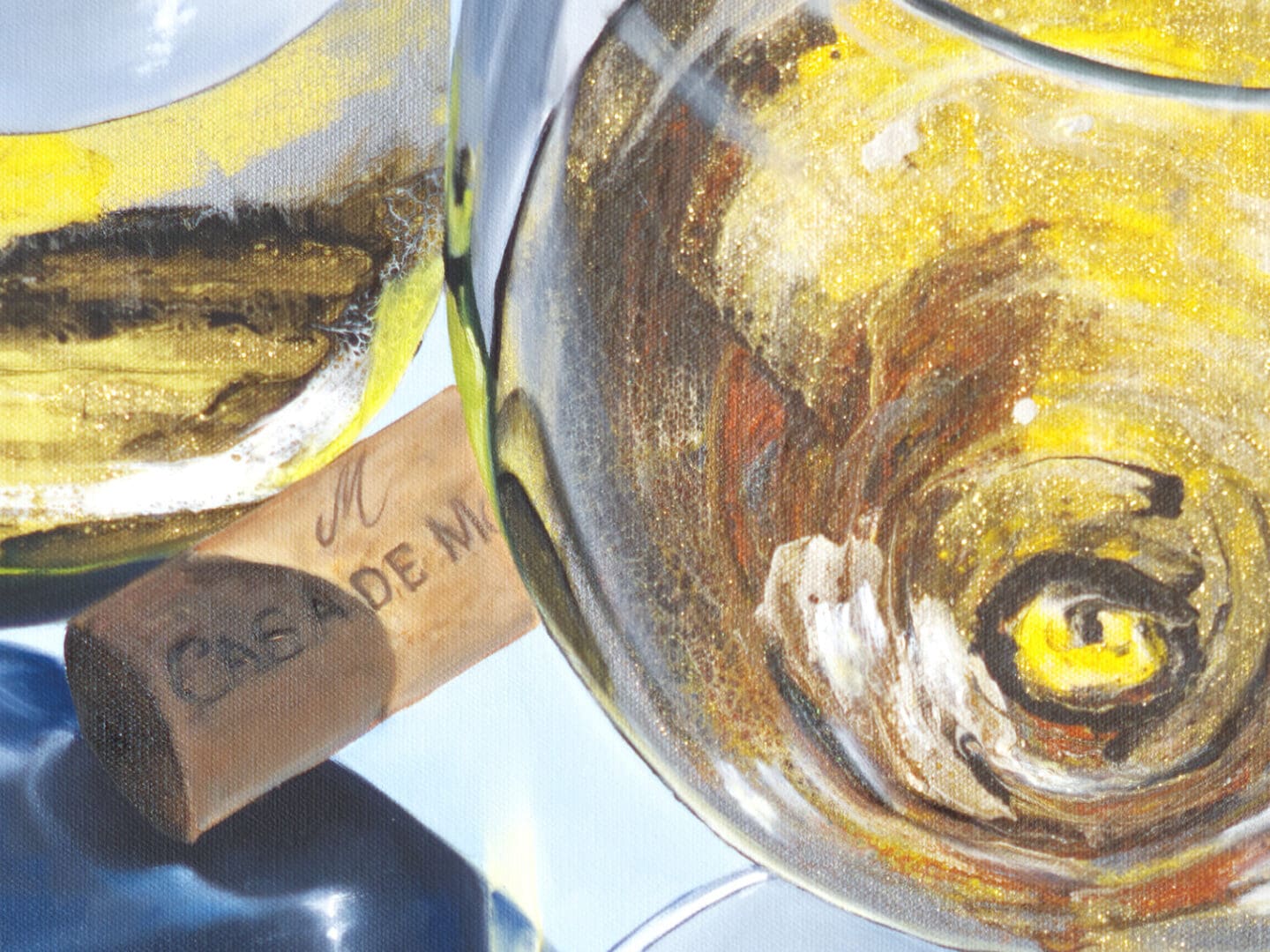 Savoring the Moment As we explore the canvas, we are encouraged to savor each detail, just as one savors a sip of fine wine. The shadows cast by the bottles and glasses create a dialogue between light and dark, sweet and robust, young and aged. The varied glasses and bottles symbolize the array of flavors, aromas, and memories that wine contributes to our lives. It’s a harmonious finale that encourages the viewer to reflect on their own wine experiences and the shared human connection found in a simple glass of wine.