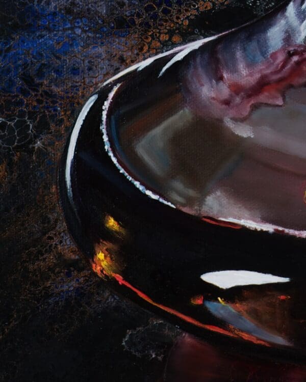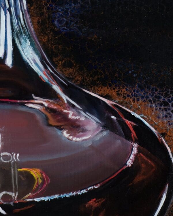 As you gaze upon this Wine Decanter, you can’t help but be mesmerized by its radiance. The background, expertly crafted with acrylic pouring techniques, serves as a stunning backdrop for the traditional oil medium depiction of the decanter and the wine within it. Each brush stroke adds depth and detail, creating a work of art that perfectly captures the essence of wine and the joy it brings to our lives. Whether you’re a connoisseur or simply appreciate the finer things in life, this decanter is sure to delight and inspire.