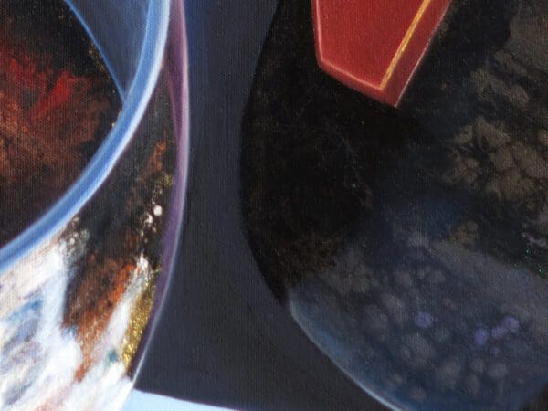 In crafting “Grapes and Gradients,” I’ve incorporated a technique close to my heart—Hybrid Fluid Realism. The wine bottles, alive and pulsating with the unpredictable charm of acrylic pouring, form a vivid contrast with the detailed glasses, shadows, and nuances, all of which I’ve lovingly shaped using traditional oil medium. This fusion of methods brings a unique depth to the piece, promising to captivate any fine art enthusiast.