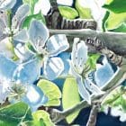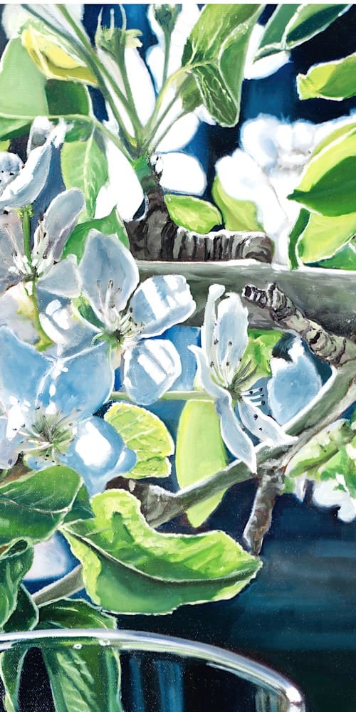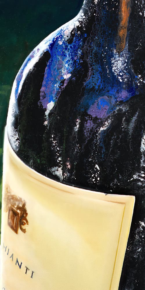 Savor the taste of a summer evening with a glass of red wine, expertly crafted using acrylic pouring techniques. As you relax in your backyard surrounded by the beauty of a pear tree in full bloom, take a moment to appreciate the simple pleasures in life. The bottle and wine glass are depicted in traditional oil medium, adding intricate details to the scene. Sit back, relax, and let the tranquility of the moment wash over you.